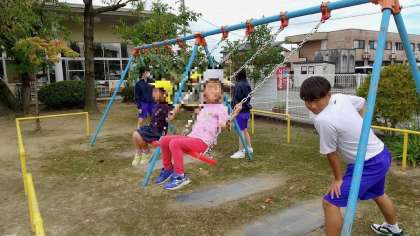 ブランコ遊びや園児たちに踊りを教えてもらい踊ったりしました。