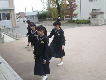 今朝の登校時は曇りになりました。今日は学習発表会です。午前中に生徒のステージ発表、午後に芸術鑑賞会を行います。また明日まで展示発表期間になります。本日の下校完了時間は16:55です。