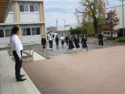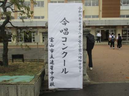 今朝の登校時は曇りになりました。今日は合唱コンクールを行います。本日の下校完了時間は16:10です。