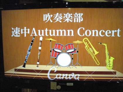 学習発表会のオープニングは、吹奏楽部の「速中Autumn concert」でした。