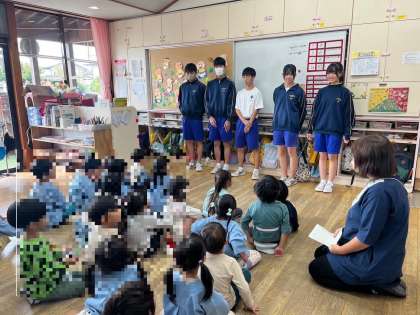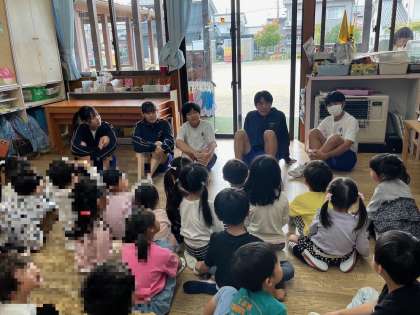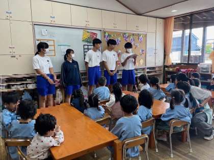 生徒たちはみんな、園児にじっと見つめられて緊張気味でした。