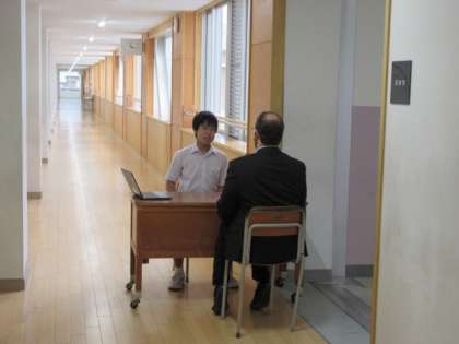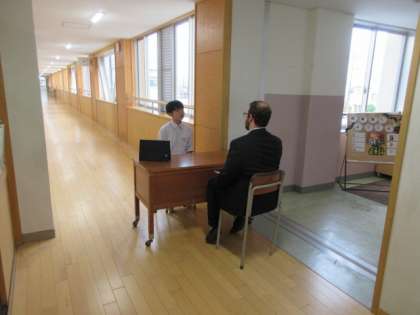 廊下ではALTとスピーキングテストを行っていました。