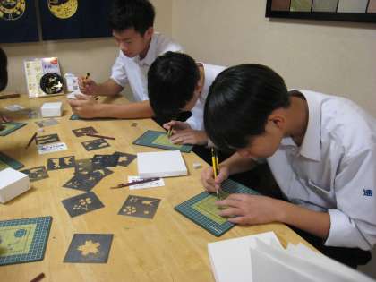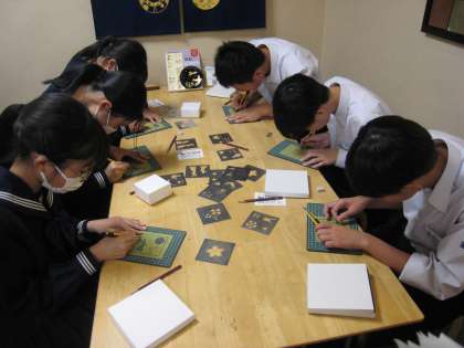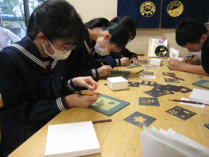 ひがし茶屋街のさくだ金箔での体験の様子です。