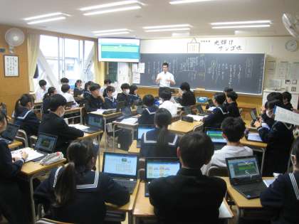 タブレット端末を活用し、一人一人の考え、思いを共有できるようにして、多様な考え方に触れることができました。
