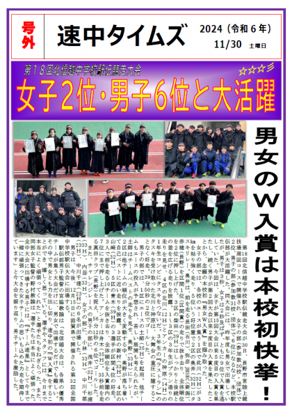 第18回北信越中学校駅伝競走大会での男女駅伝部の活躍を「速中タイムズ『号外版』」として発行しました。