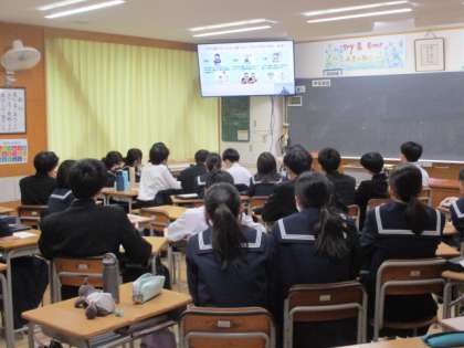 保健委員会の生徒がスライドで発表した後、PTA役員の方々や学校医の先生や学校薬剤師の先生から感想や助言をいただきました。