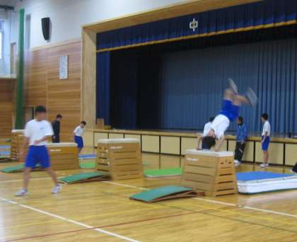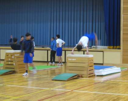 それぞれの技量に合わせて、高さの異なる跳び箱の練習をしています。