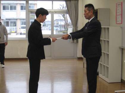 本日、12月15日(日)に開催される標記大会に出場する男子駅伝部に教育振興会からの激励費を鍋田校長が手渡しました。