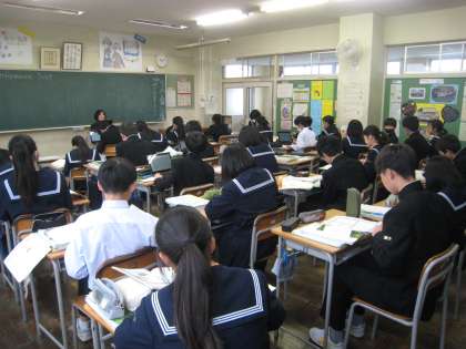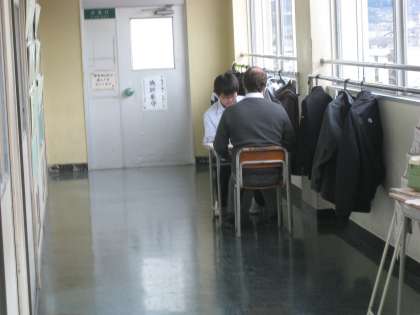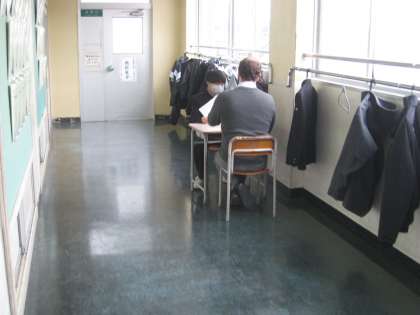 パフォーマンステストを行い、緊張しながらも学習した英会話を努めていました。