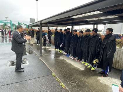 開会式終了後、富山県中学校体育連盟会長と富山県教育委員会保健体育課主幹から激励の言葉をいただきました。