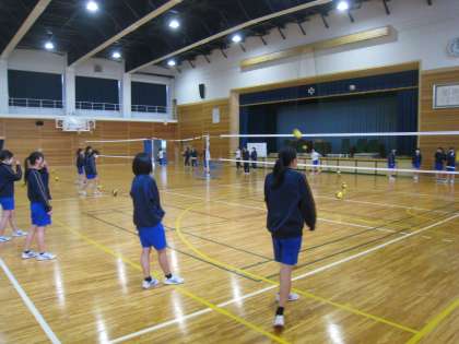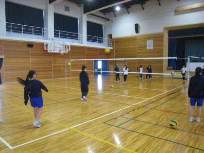 お互い声をかけながら、バレーボールの練習に取り組んでいます。