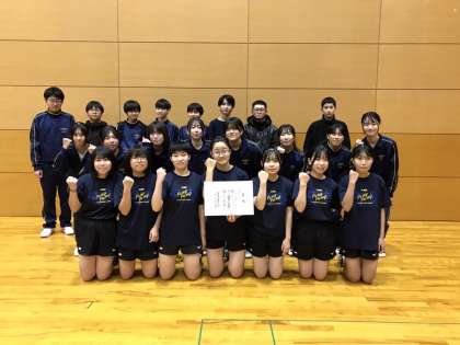 本校女子卓球部は、本日行われた全国中学校選抜卓球大会県予選にて2位となり,全国大会出場権を獲得しました。