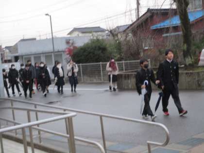 今朝の登校時は曇りになりました。今日は2学期終業式を行います。本日の下校完了時間は11:40です。