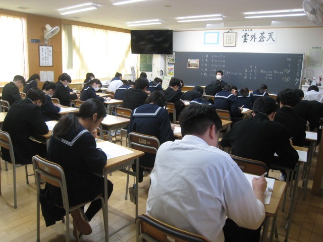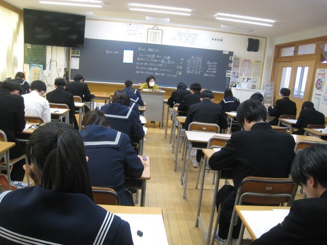 本日、第3学年は登校日となっており、実力テストを行っています。
