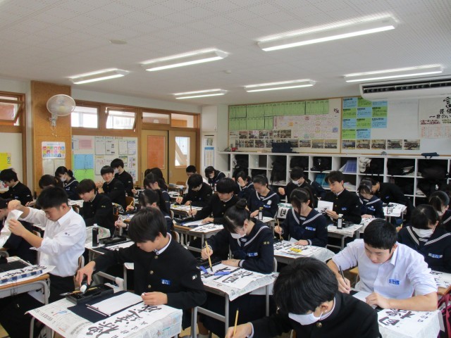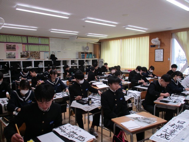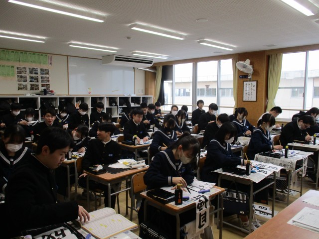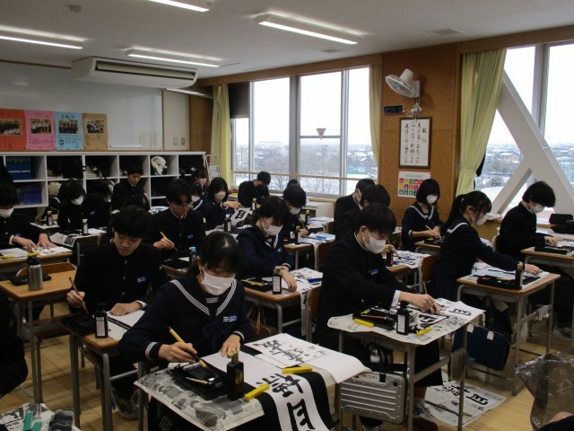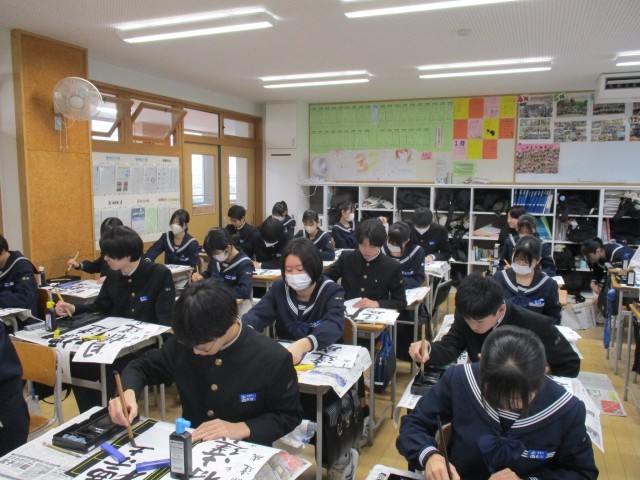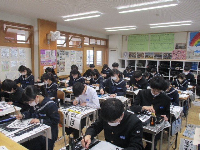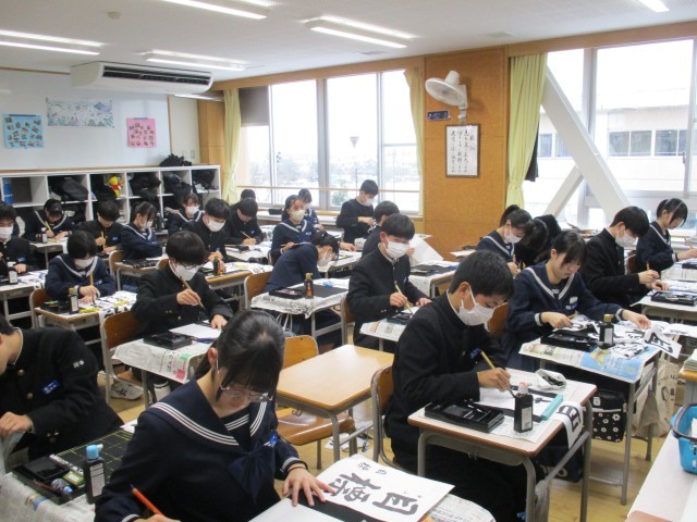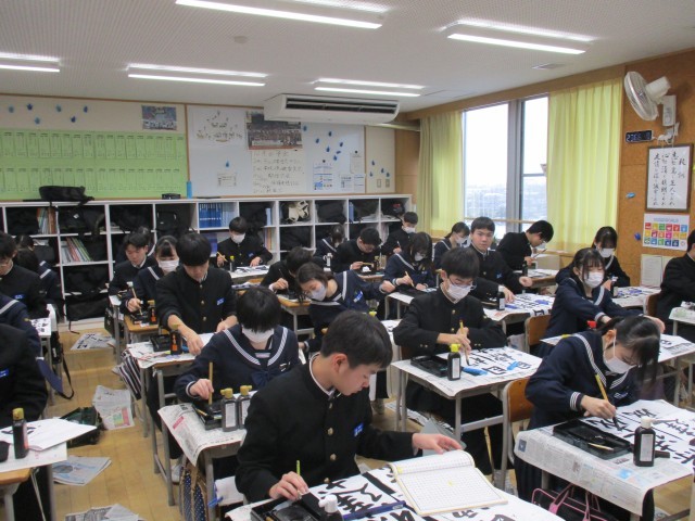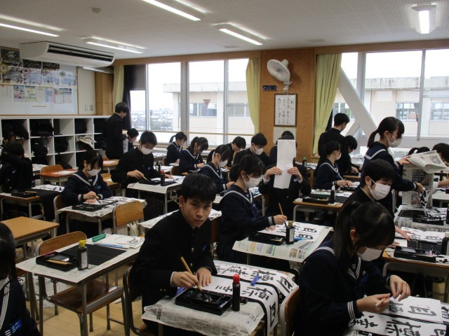 1月8日(水) 3年生書き初め大会 公開日 2025/01/08 更新日 2025/01/08 3年生 3年生は「目標達成」を書きました。3年生は行書で筆を進め、流れる漢字の美しさを表現していました。写真は31H~39Hの様子です。 +6