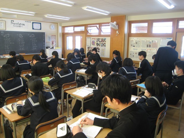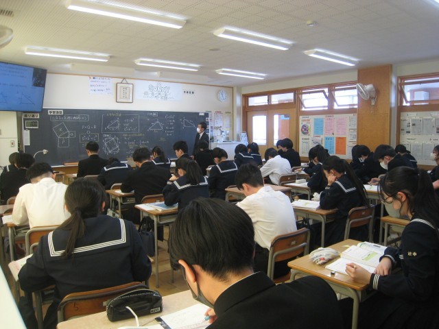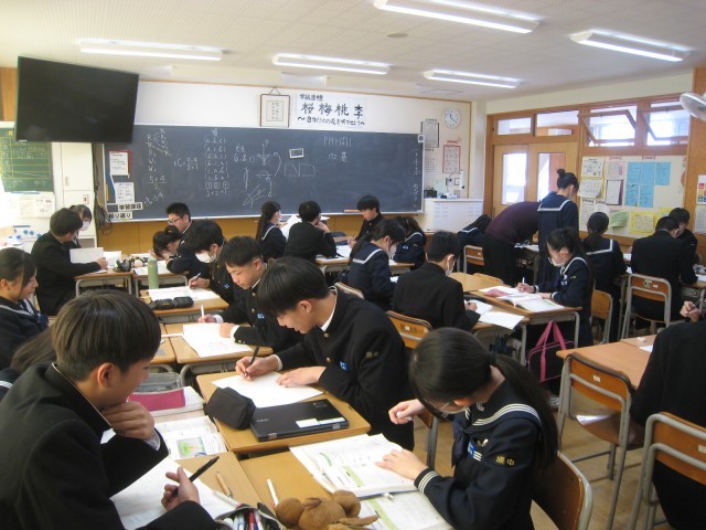 1月10日(金) 3年生 授業の様子 公開日 2025/01/10 更新日 2025/01/10 3年生 3年生の3限の授業の様子です。いよいよ大詰めになってきた3年生は、どのクラスでも真剣に学習内容を進めていました。31H国語(テスト見直し)、32H数学(三平方の定理)、33H社会(労働者の権利)、34H国語(漢字)、35H数学(三平方の定理)36H美術(作品制作)、37H技術(アプリの開発)、38H数学(演習問題)、39H理科の様子です。 +6