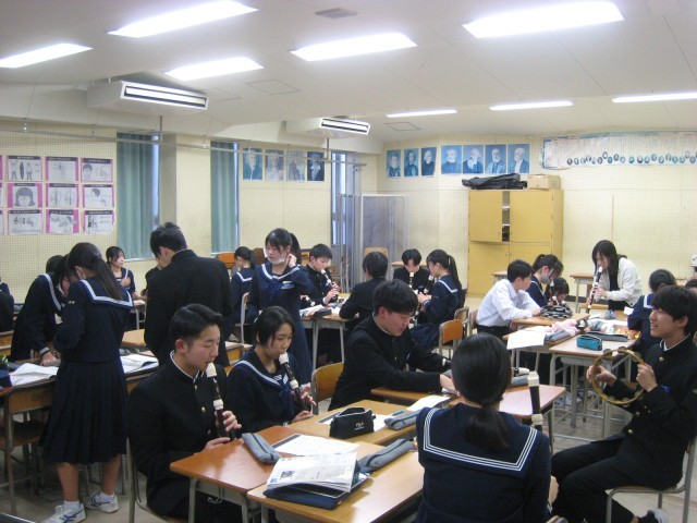 32H音楽 グループでアルトリコーダーの合奏練習をしています。