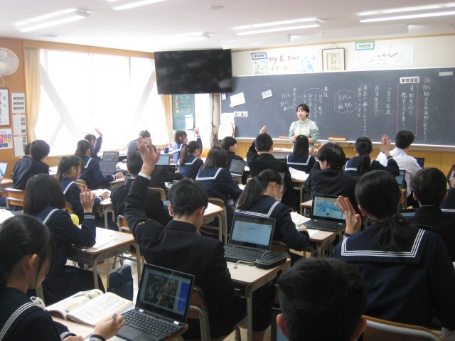 1月15日(水) 2年生 授業の様子 公開日 2025/01/15 更新日 2025/01/15 2年生 2年生の3限の授業の様子です。3年生へとつながる大切な残りの授業に、力を入れていました。写真は、21H社会(中央高地)、22H数学(証明)、23H理科(電流)、24H英語(復習)25H数学(証明)、26H英語(プレゼンテーション)、27H国語(鑑賞文)、28H国語(鑑賞文)の様子です。 +7