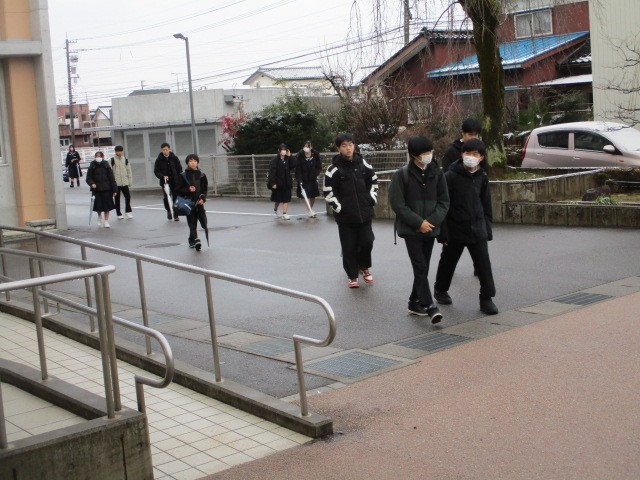 今朝の登校時は曇りになりました。本日の下校完了時間は16:50です。