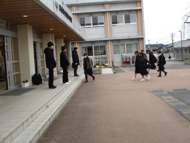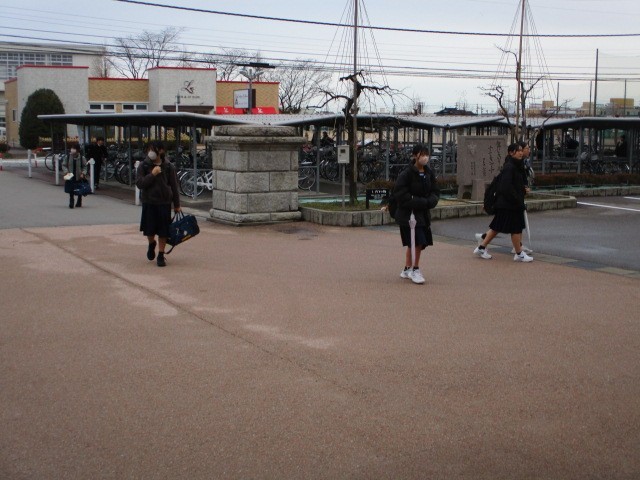 今朝の登校時は曇りになりました。今日は3年生が確認テストを行います。放課後の部活動は行いません。本日の下校完了時間は15:15です。