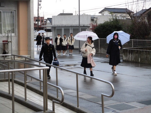 今朝の登校時は雨になりました。本日の下校完了時間は16:20です。