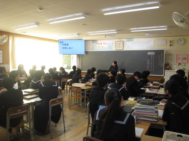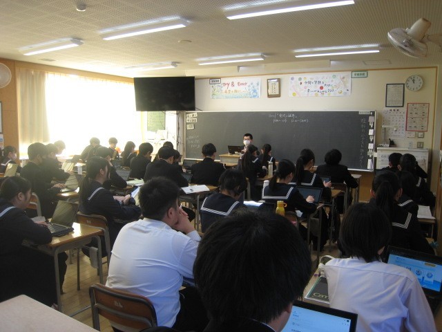 2月25日(火) 2年生 授業の様子 公開日 2025/02/25 更新日 2025/02/25 2年生 2年生の4限の授業です。21H国語、22H数学、23H理科、24H音楽、25H英語、26・28H保健体育、27H英語の様子です。 +4