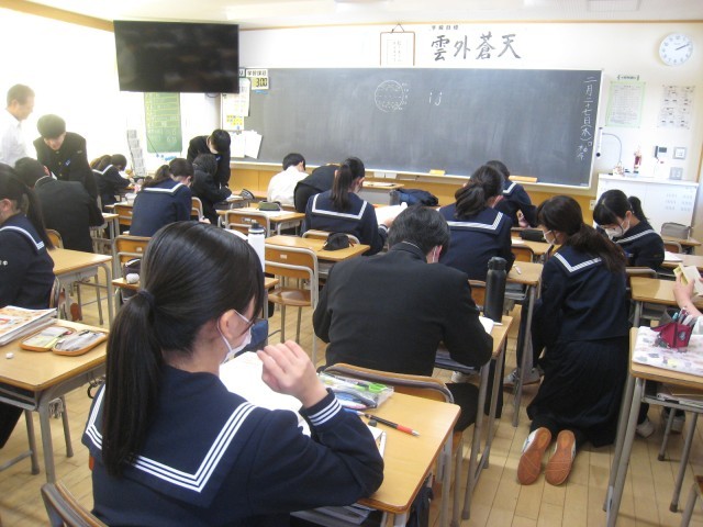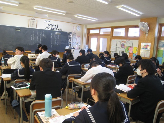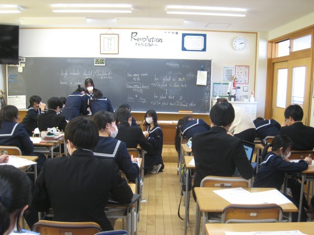 2月27日(木) 3年生 授業の様子 公開日 2025/02/27 更新日 2025/02/27 3年生 3年生の5限の授業です。31H数学、32H社会、33H理科、34H英語、35H国語36・37H保健体育、38H英語、39H英語の様子です。 +6