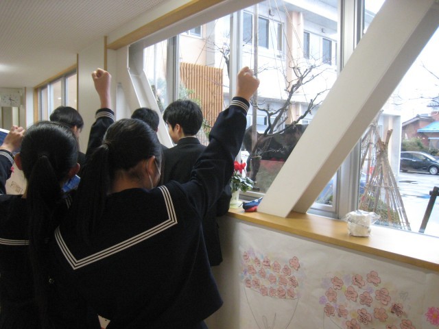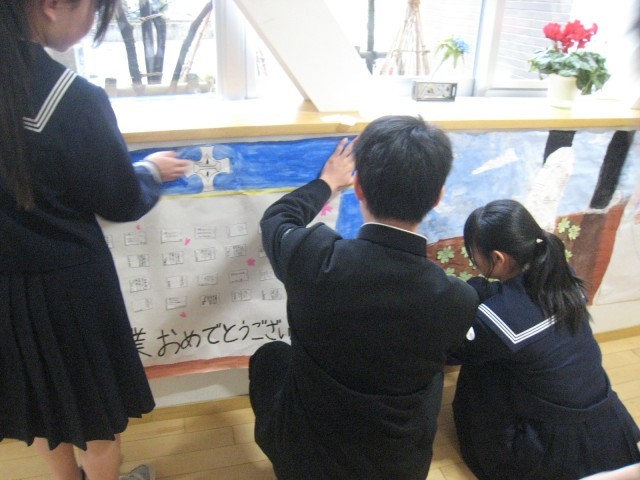 3年生の卒業に向けて2年生からのお祝いのメッセージを掲示しました。