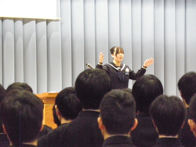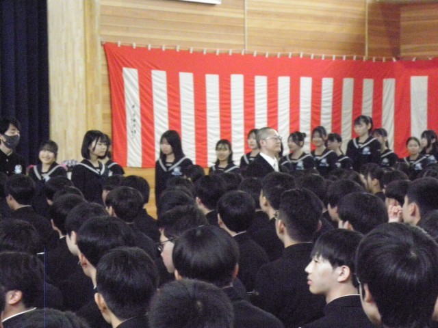最後に校歌を斉唱して式を終え、在校生、保護者の祝福を受けながら退場しました。