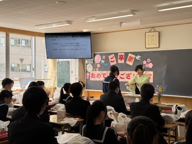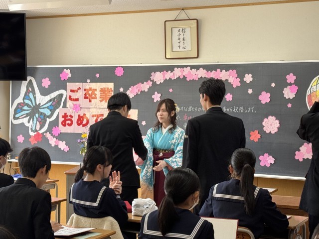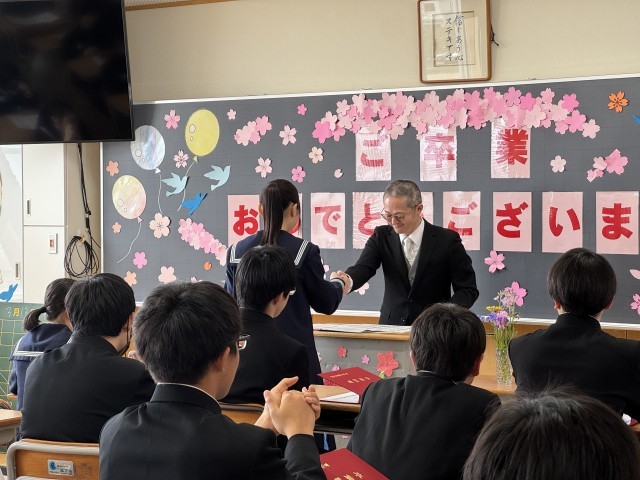 卒業式後の最後の学活では、担任の先生からも卒業証書を一人一人もらい、担任からの最後の言葉に涙する生徒もたくさんいました。