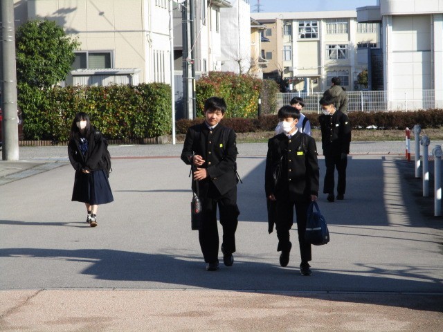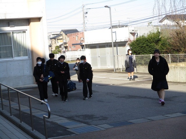 今朝の登校時は晴れになりました。2年生は5限に平和講演会を行います。本日の下校完了時間は14:55です。