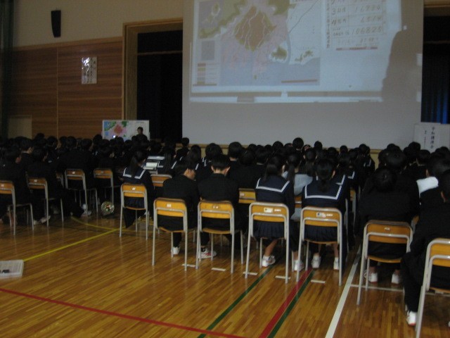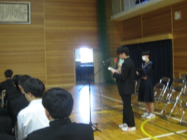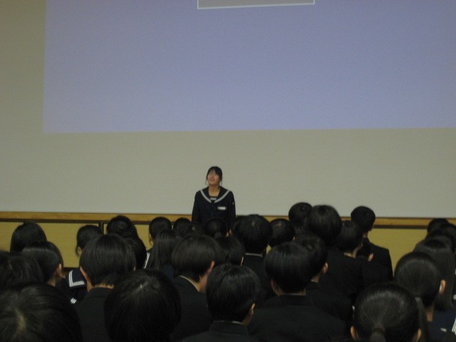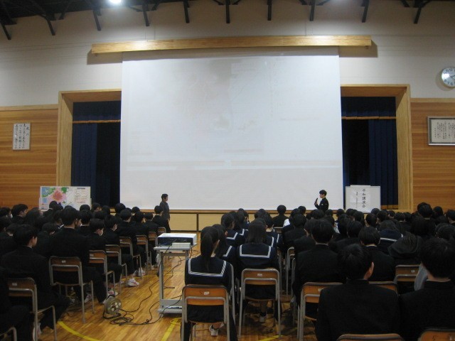 2年生では、来年度の修学旅行に向けて平和講演会を行いました。