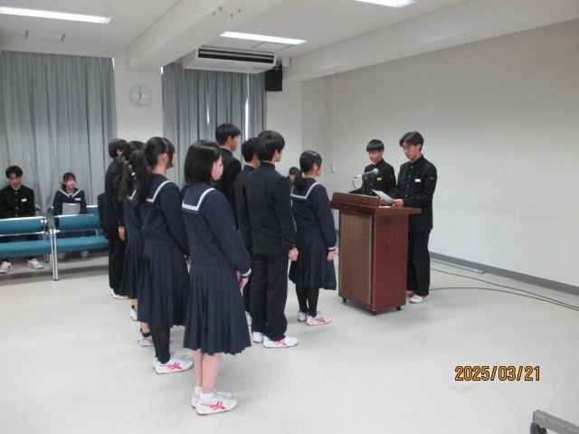 3月21日(金) 4限 令和7年度前期生徒会役員任命式・委嘱式