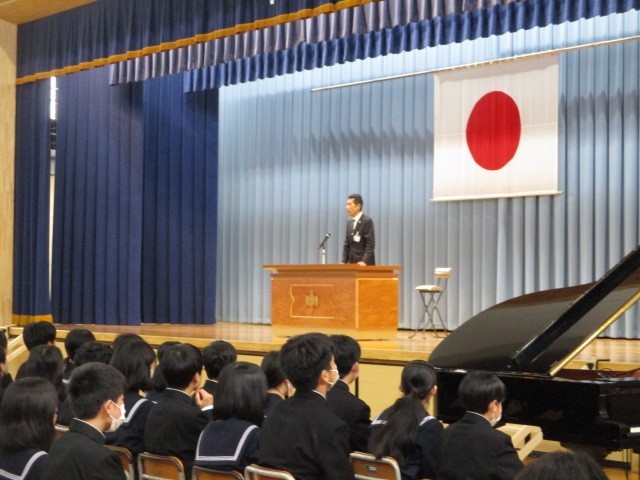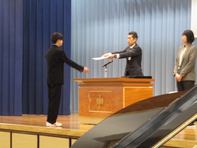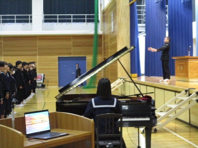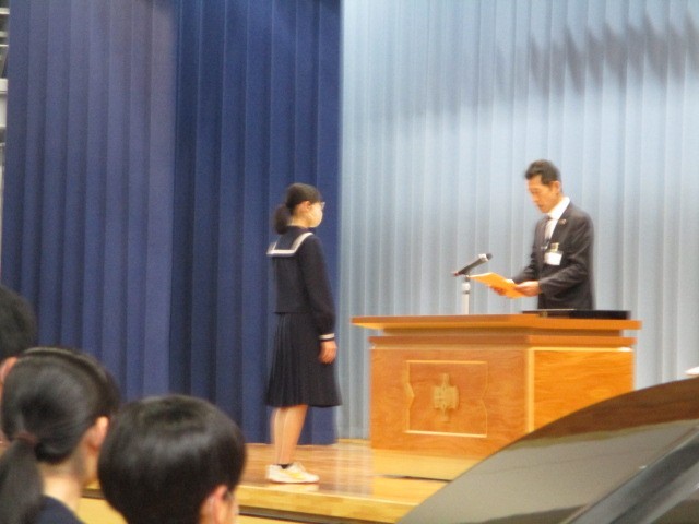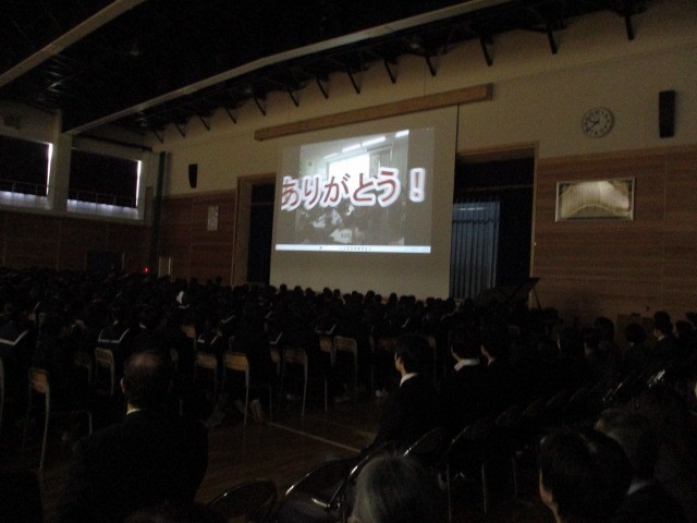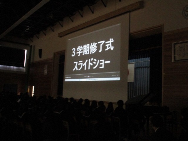 3月24日(月) 修了式 公開日 2025/03/24 更新日 2025/03/24 全学年 校訓唱和リーダーによる校訓唱和の後、修了式が始まりました。始めに各学年の代表者に修了証が手渡されました。鍋田校長は式辞で1年間の節目となる4月からどのように頑張るかを考えてより成長してほしいと述べました。最後に校歌斉唱をしました。式の後、鍋田校長が作成した1年間を振り返るスライドを鑑賞しました。 +4
