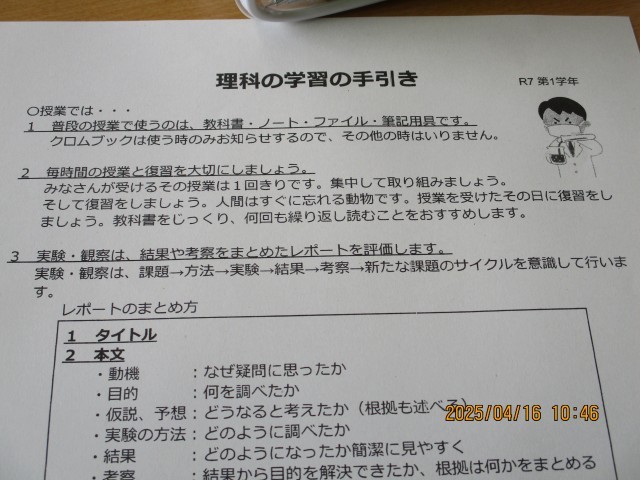 1年生も、いよいよ授業が始まりました。1回目の授業はガイダンスが行われています。