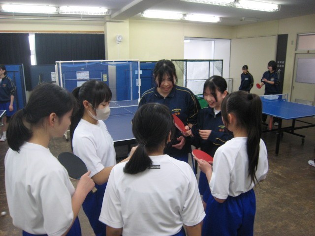 上:卓球部 ラケットの握り方を教えてもらったり球出しをしてもらって打ち込みをしたりしました。