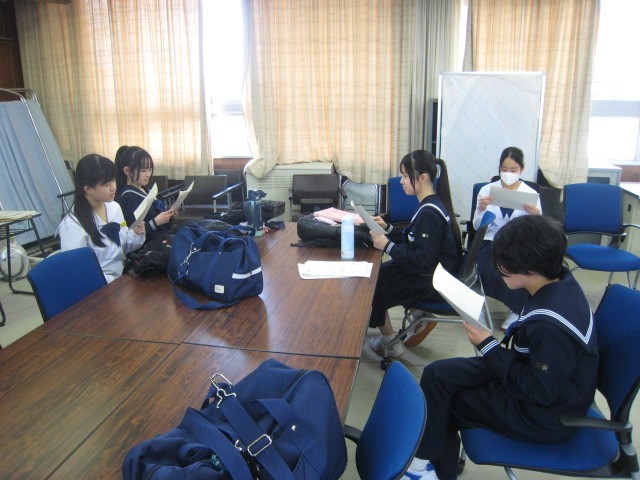 中:演劇部 役柄をそれぞれ決めて台本の読み合わせをしました。