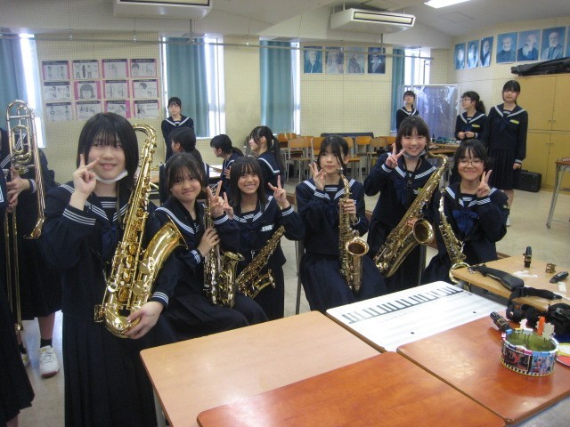 中:吹奏楽部は先輩についてもらって、楽器を実際に鳴らしてみました。