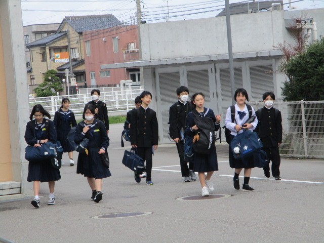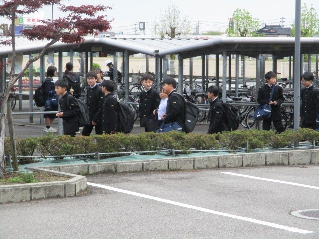 今朝の登校時は曇りになりました。本日の下校完了時間は16:55です。