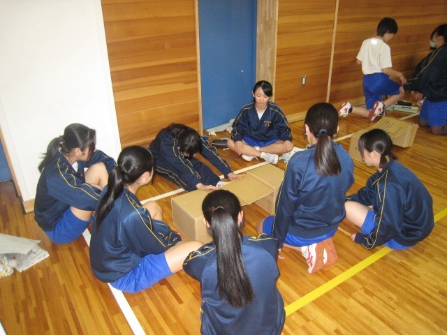 体育館では3年生が新体力テストを実施しています。反復横跳び、立ち幅跳び、握力、前屈等、去年の記録と比較しながら楽しそうに取り組んでいます。