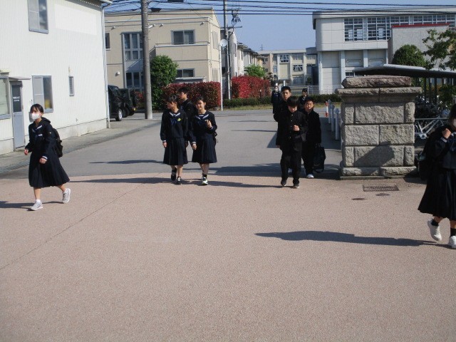 今朝の登校時は晴れになりました。今日は午後から学習参観、学年懇談会、部活動保護者会を行います。本日の下校完了時間は14:15です。