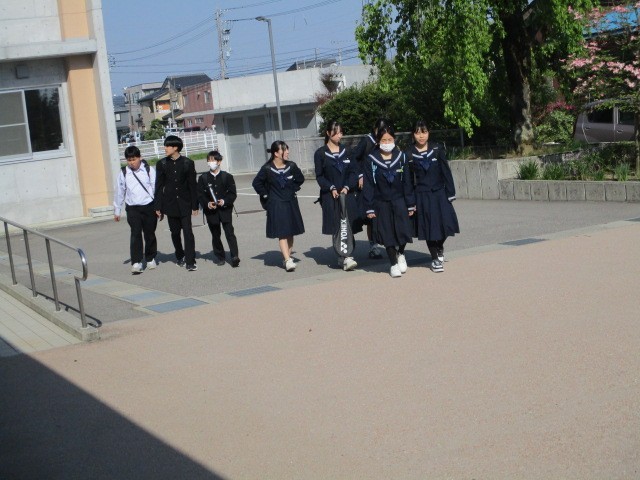 今朝の登校時は晴れになりました。本日の下校完了時間は16:55です。