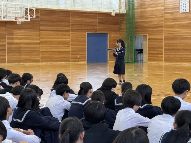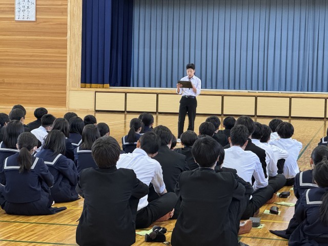 団長の教頭先生と、校長先生からお言葉をいただき、楽しい修学旅行にするために、様々なことを気づき、学ぶ修学旅行にするという気持ちを高めました。