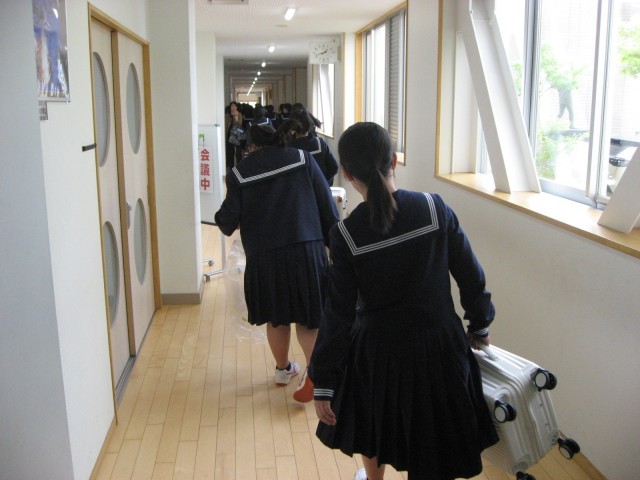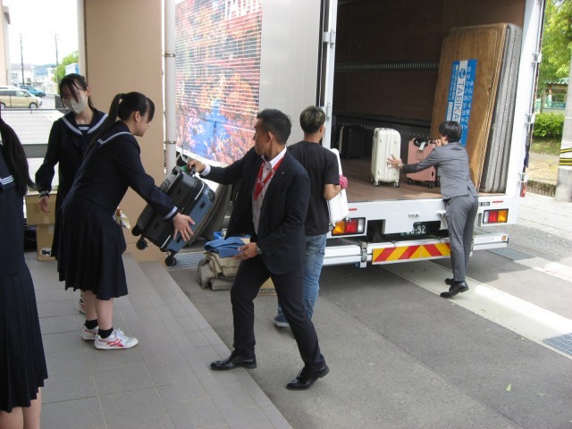 修学旅行出発2日前です。広島のホテルへ届けるため、前日確認した大きな荷物をトラックに積み込みました。
