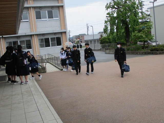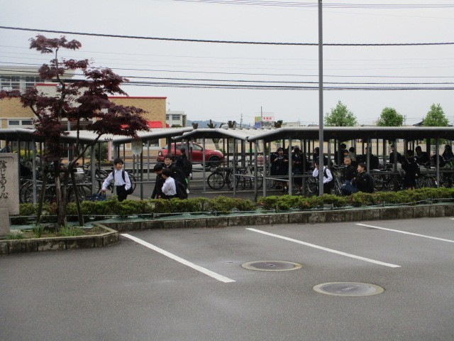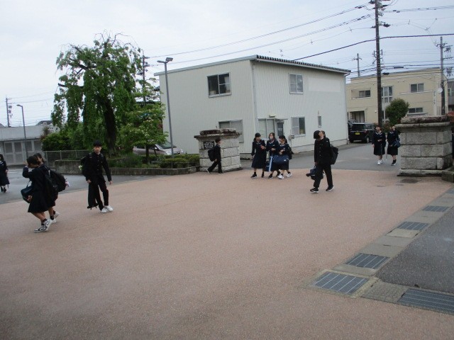 今朝の登校時は曇りになりました。本日の1・2年生の下校完了時間は16:55です。