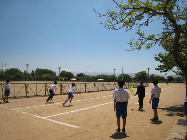 体育では男子が50m走、女子がサッカーを行いました。体を動かしながら、仲間と協力する姿が見受けられました。