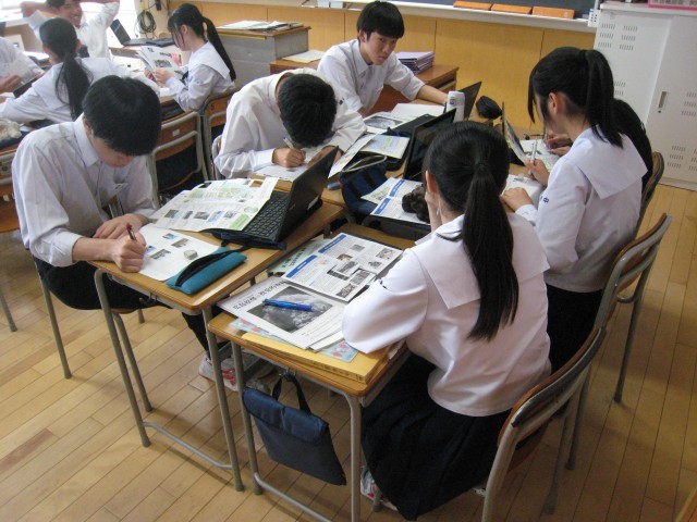 体育館で解団式を行った後、教室に戻って平和学習の個人レポートを作成しました。