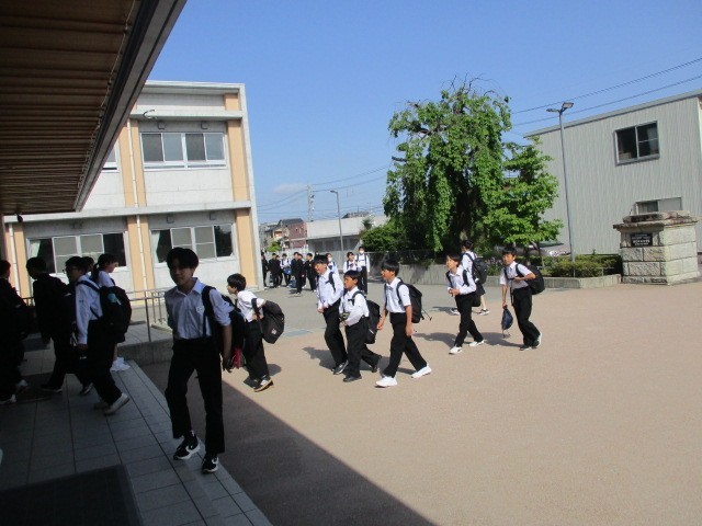 今朝の登校時は晴れになりました。今日から中間考査のテスト週間に入ります。部活動は行いません。本日の下校完了時間は15:55です。