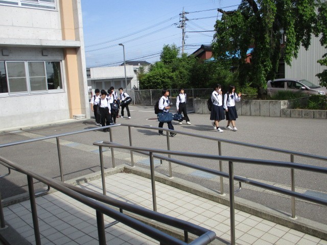 今朝の登校時は晴れになりました。本日の下校完了時間は16:55です。
