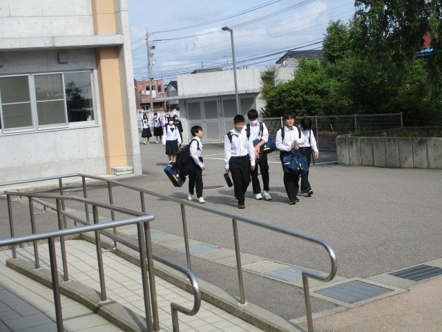 今朝の登校時は晴れになりました。今日は午後から研修会のため生徒は放課になります。本日の下校完了時間は13:15です。